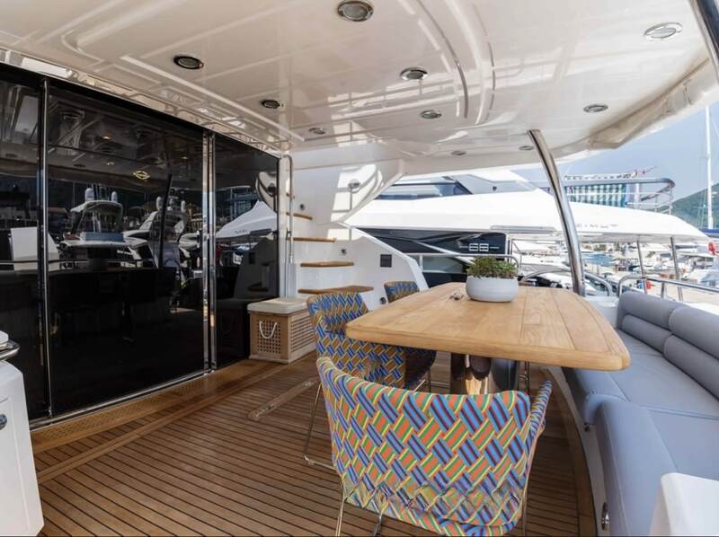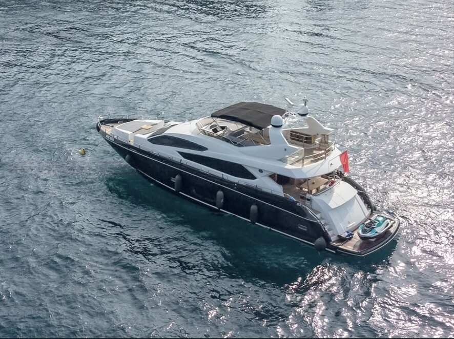 The 24.50m/80’ Elly 80 motor yacht built by shipyard Sunseeker Yacht is available for charter for up to 12 guests in 4 cabins. This yacht features interior styling by Sunseeker Yacht.